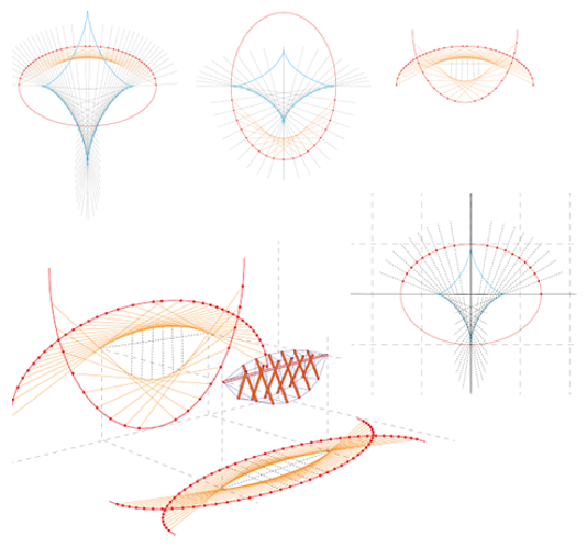 Geometric processes and algorithms have been developed to precisely determine the geometry of both the skeleton structure and flexible skin. In addition for part fabrication, parametric processes based on the developed algorithms, have been applied .An efficient deployment and collapse method that facilitates the transportation and the rapid erection of the pavilion structure is also described in the paper.